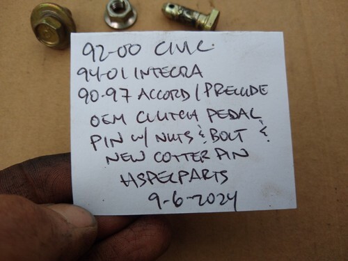 GOOD USED CONDITION. OEM CLUTCH PEDAL/CMC BOLT, NUTS AND PIN. NEW COTTER PIN INCLUDED. FITS 92-00 CIVIC AND 94-01 INTEGRA. SHIPS USPS WITHIN 1 BUSINESS DAY OF PAYMENT.