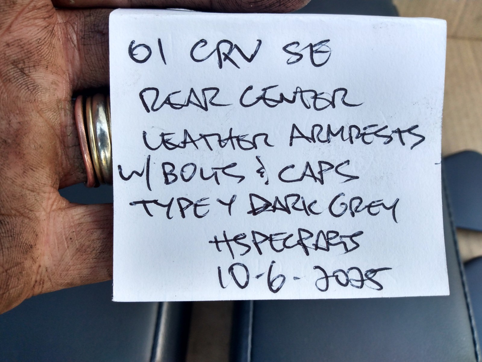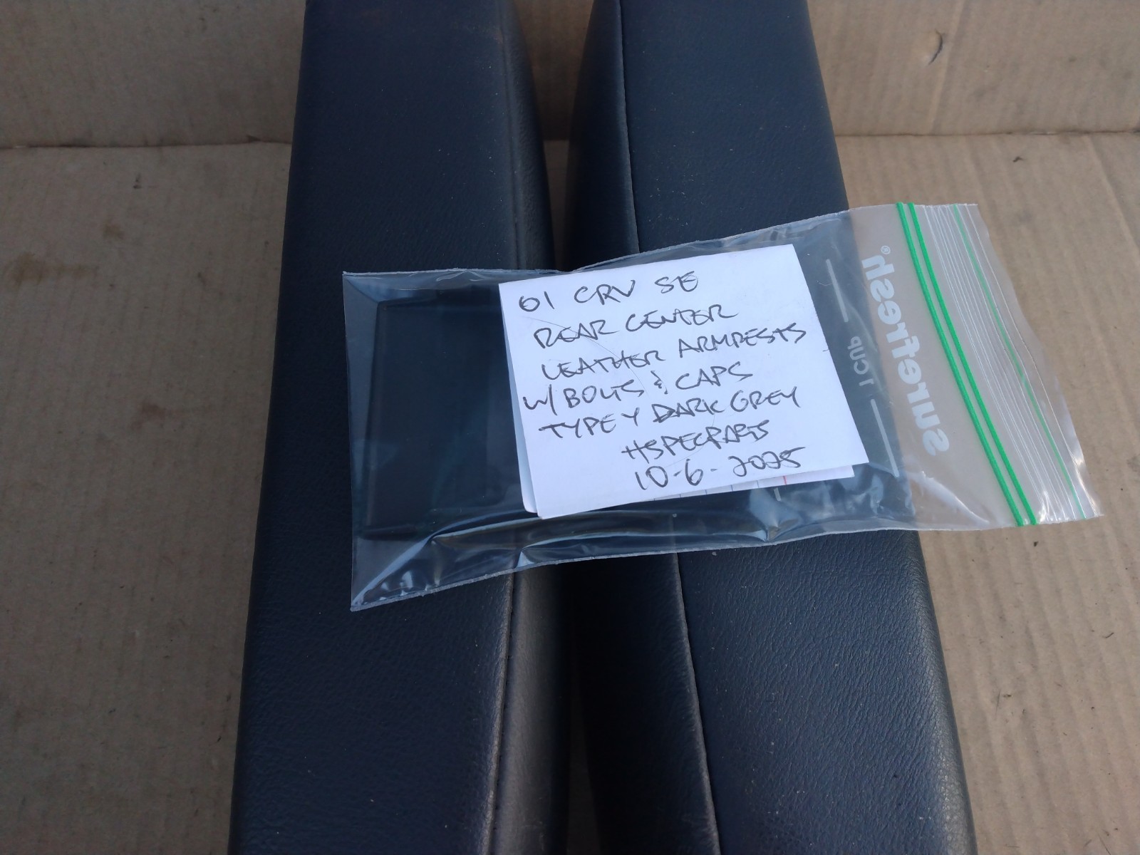 GOOD USED CONDITION BOTH REAR LEATHER ARM RESTS FROM A 2001 CRV SE. COMES WITH BOLTS AND CAPS/COVERS PICTURED. SHIPS USPS WITHIN A BUSINESS DAY OF PAYMENT.