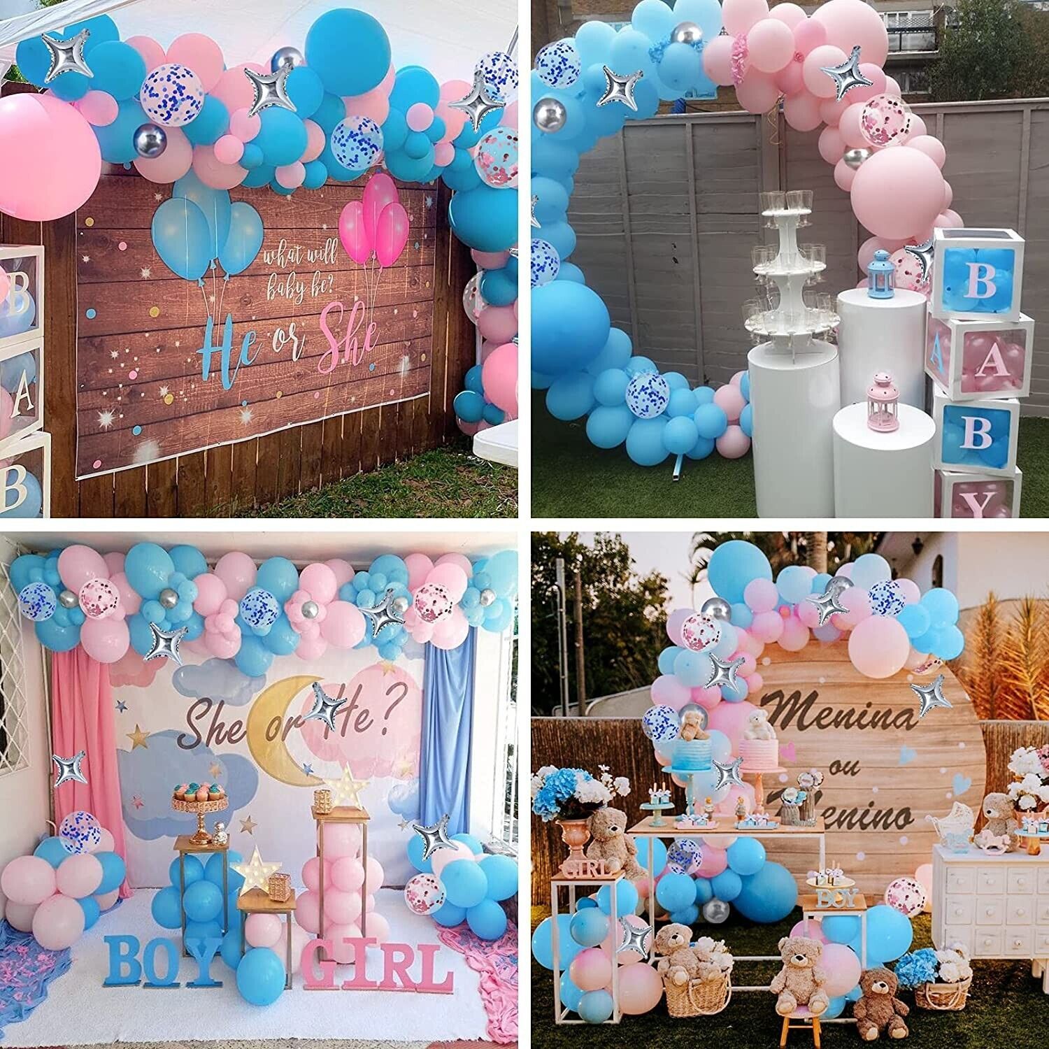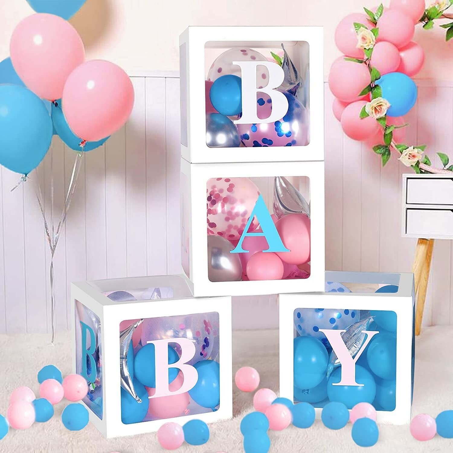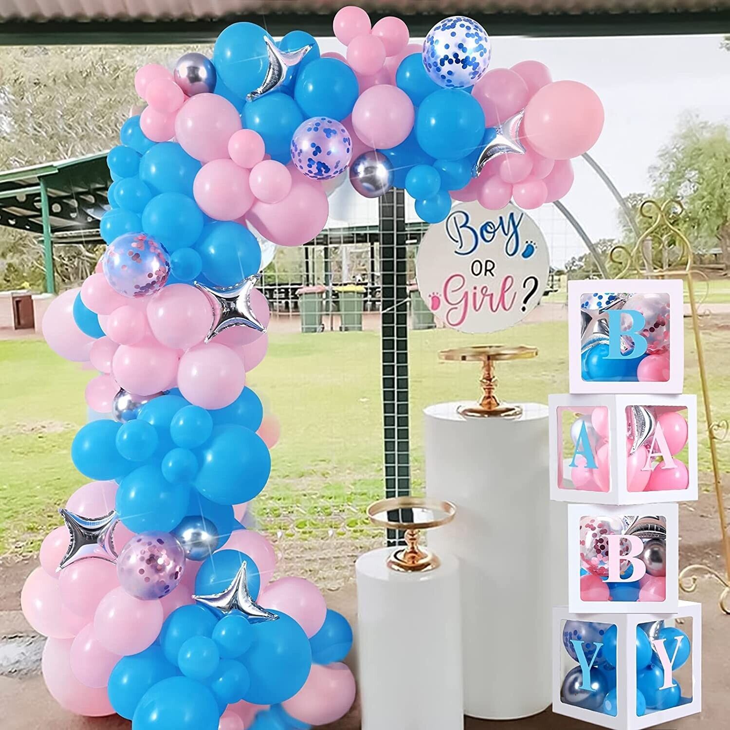 Multi-Function - A variety of bright colorful balloons and 4 sets baby boxes with Letters are very suitable for gender reveal party decorations. They can also be used as baby theme baby shower kid birthday party decoration, perfect backdrops and props for your photos which make your party more festive.