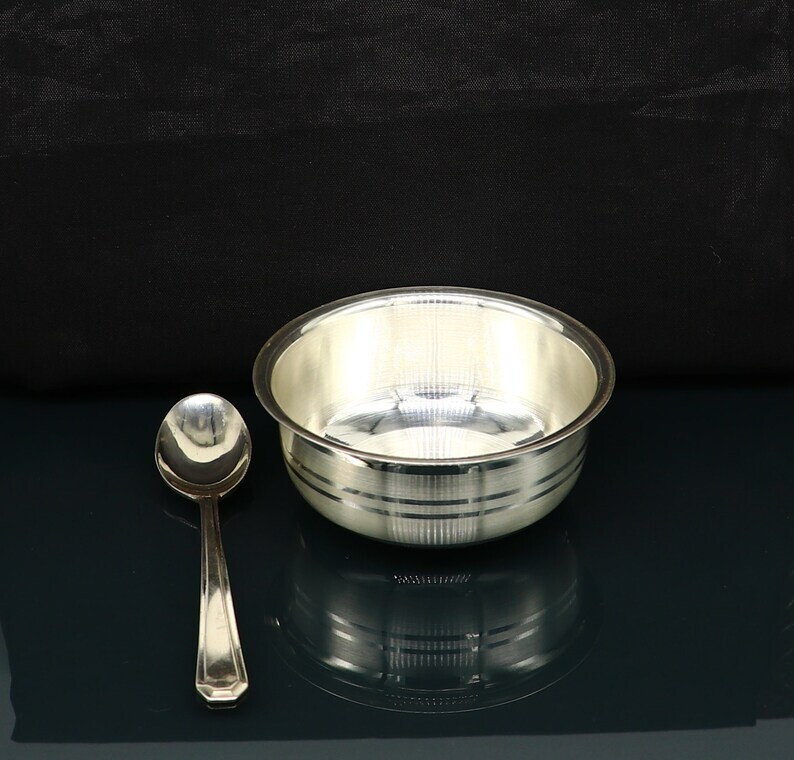 - 999 pure fine silver handmade solid bowl and spoon,baby utensils set sv180