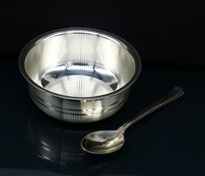 999 pure fine silver handmade solid bowl and spoon,baby utensils set sv180