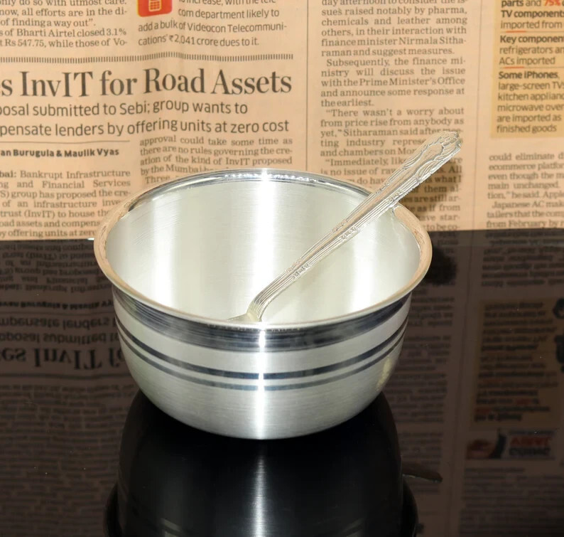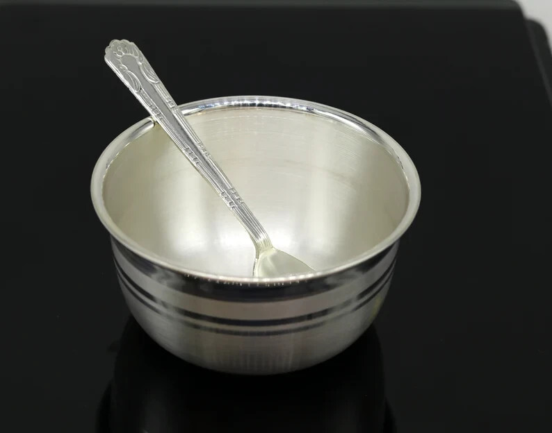 - 999 solid sterling silver bowl spoon stay baby/kids healthy, silver vessel sv92