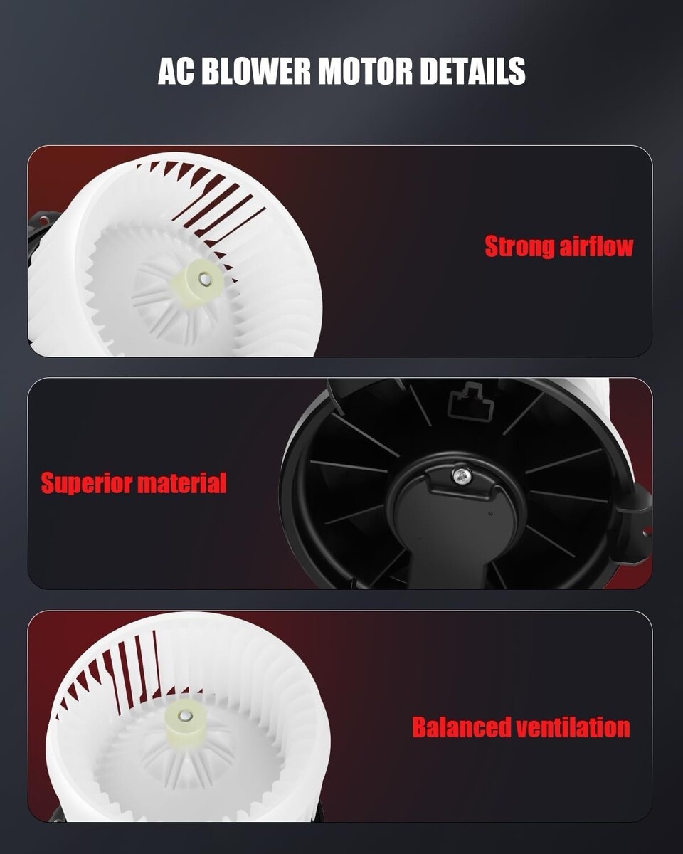 New rear AC / heater blower motor assembly designed to restore proper airflow for rear climate control systems. Direct-fit replacement with correct electrical connector and mounting points for easy installation.