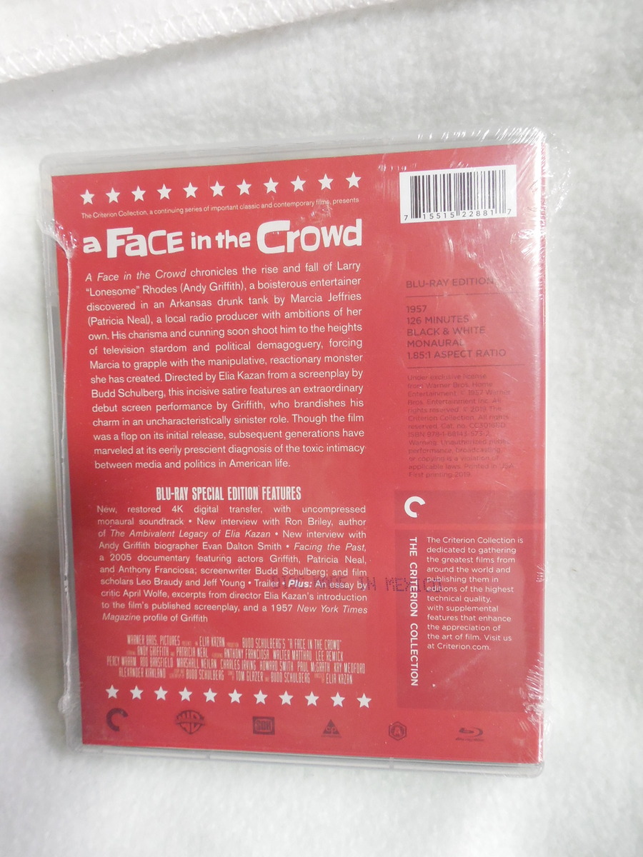 - A Face in the Crowd Criterion Collection Blu-Ray Unopened