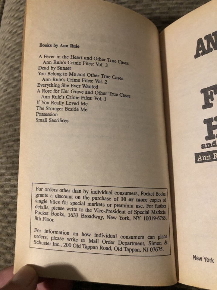 - A Fever In The Heart And Other True Cases: Ann Rules Crime Files, Volume III by