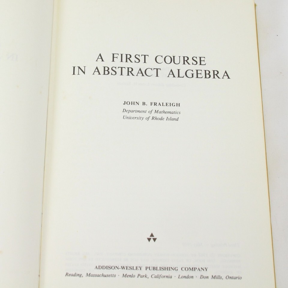 - A First Course in Abstract Algebra 3rd Printing 1969 by John B. Fraleigh
