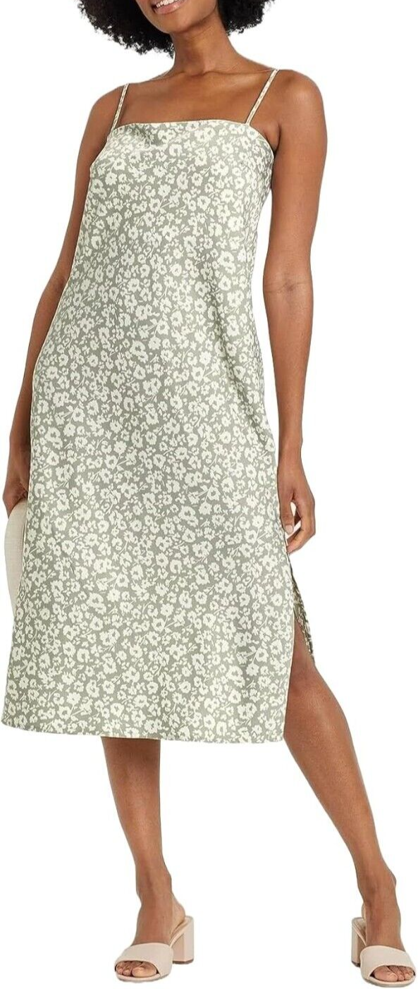 - A New Day Apron Slip Dress with Side Splits (Size M/8-10) GREEN FLORAL - NEW!!!