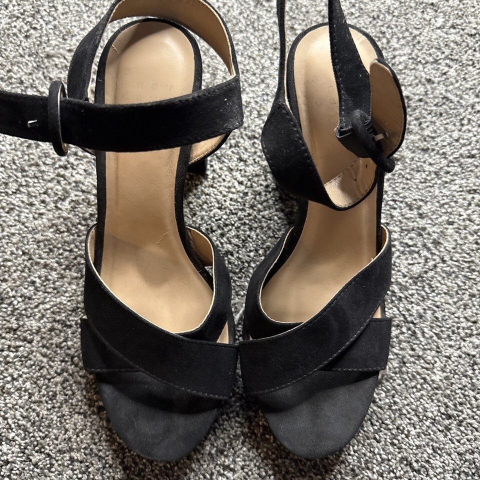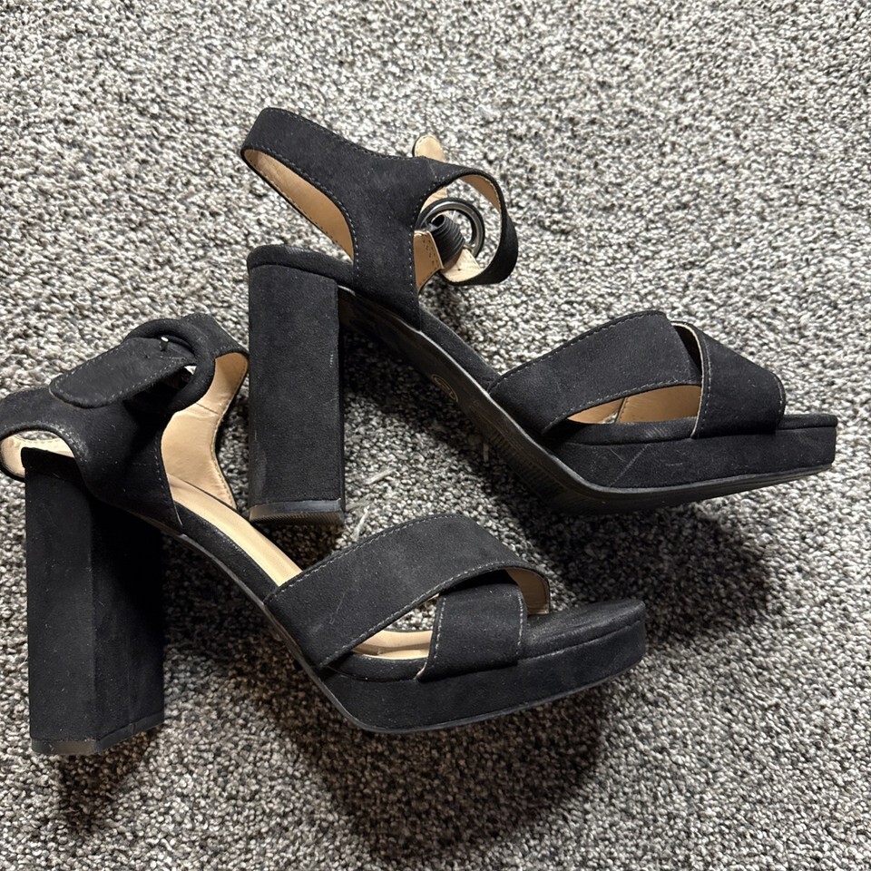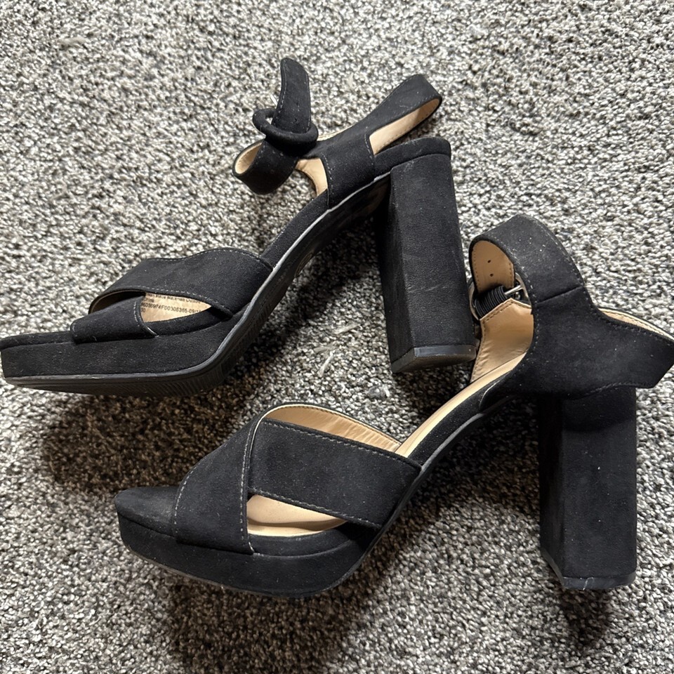 - A New Day Faux Suede Platform Heels Ankle Strap Black Size 7.5 Women’s