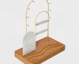 Display your jewelry collection while keeping things organized with the Rounded Standing Organizer Jewelry Box from A New Day?. This standing jewelry organizer features an arch-shaped stand with multiple pegs and a brown base to offer ample space for your earrings, rings and more. Made with a wooden base and gold-tone metal stand, this jewelry organizer adds an elegant accent to your vanity. A New Day?: Style that goes wherever you do.