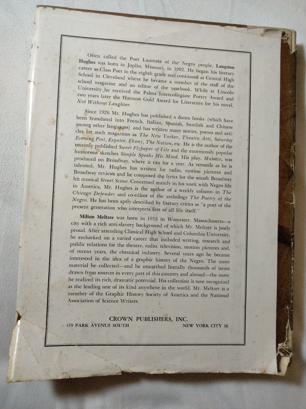 - A Pictorial History of the Negro in America Langston Hughes Milton Meltzer 1956