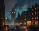 A breathtaking scene of London captured in a rare moment of surreal drama and cinematic beauty. The warm glow of the city’s lights reflects across the quiet streets as the iconic clock tower blazes with fiery brilliance against the deep night sky. Smoke curls upward like a dark crown, contrasting with the calm atmosphere below. This image blends elegance, tension, and urban charm—perfect for collectors, storytellers, or anyone who loves artwork that captures both the spirit of London and the thrill of a once-in-a-lifetime moment.