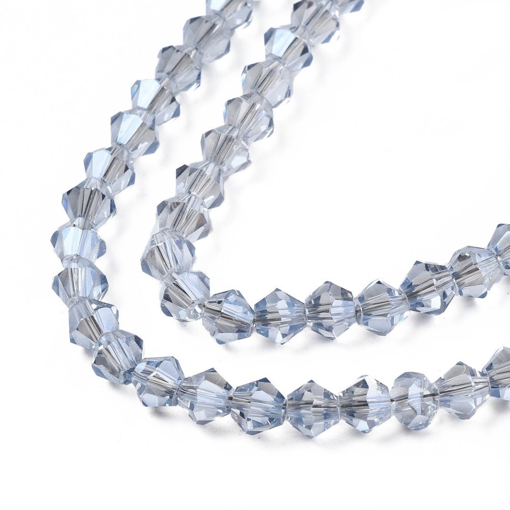 Description: Electroplate Transparent Glass Beads Strands, Faceted, Bicone, Clear