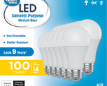 A19 LED Light Bulbs, 100 Watts Eqv, Daylight, General Purpose, 9Yr, Medium Base, 12 Pack