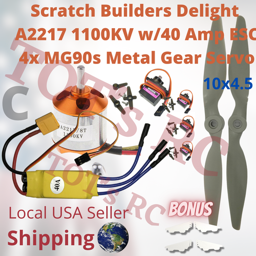 - A2217 1100kv | 40AMP ESC 40a ESC 4s ESC MG90s Mini Servos w/ 10x4.5 PROP