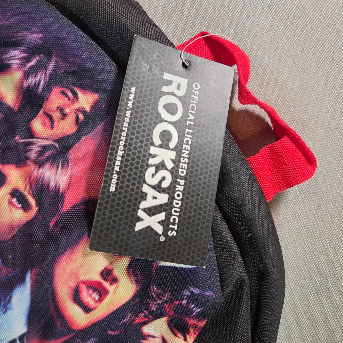 Features vivid full-color album artwork on the front, red straps and handle, and durable black polyester body. Padded back panel and adjustable straps for comfort. Brand new with tags, released in 2022.