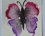 - ACEO Original Art Purple and Red Butterfly Watercolor Painting o