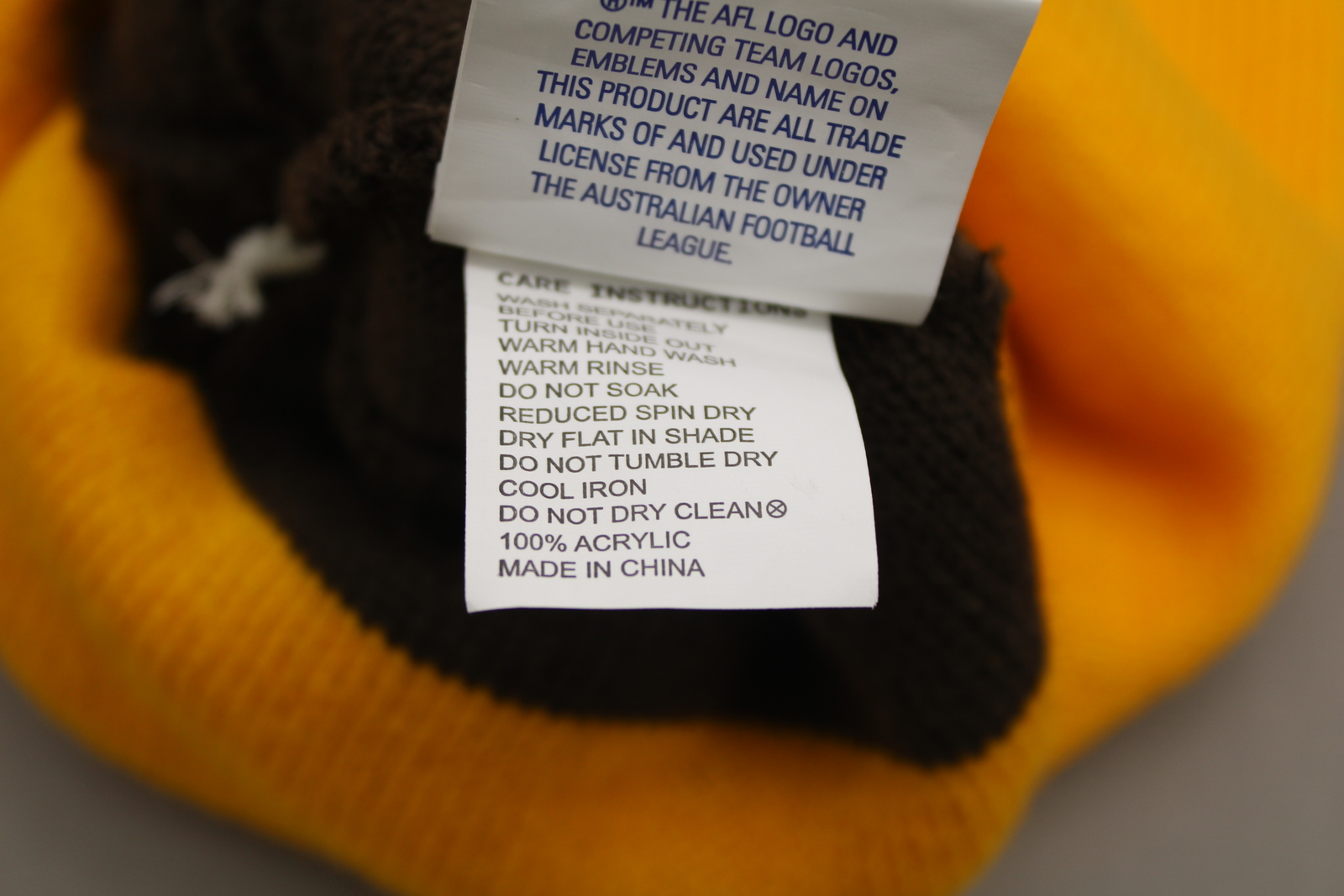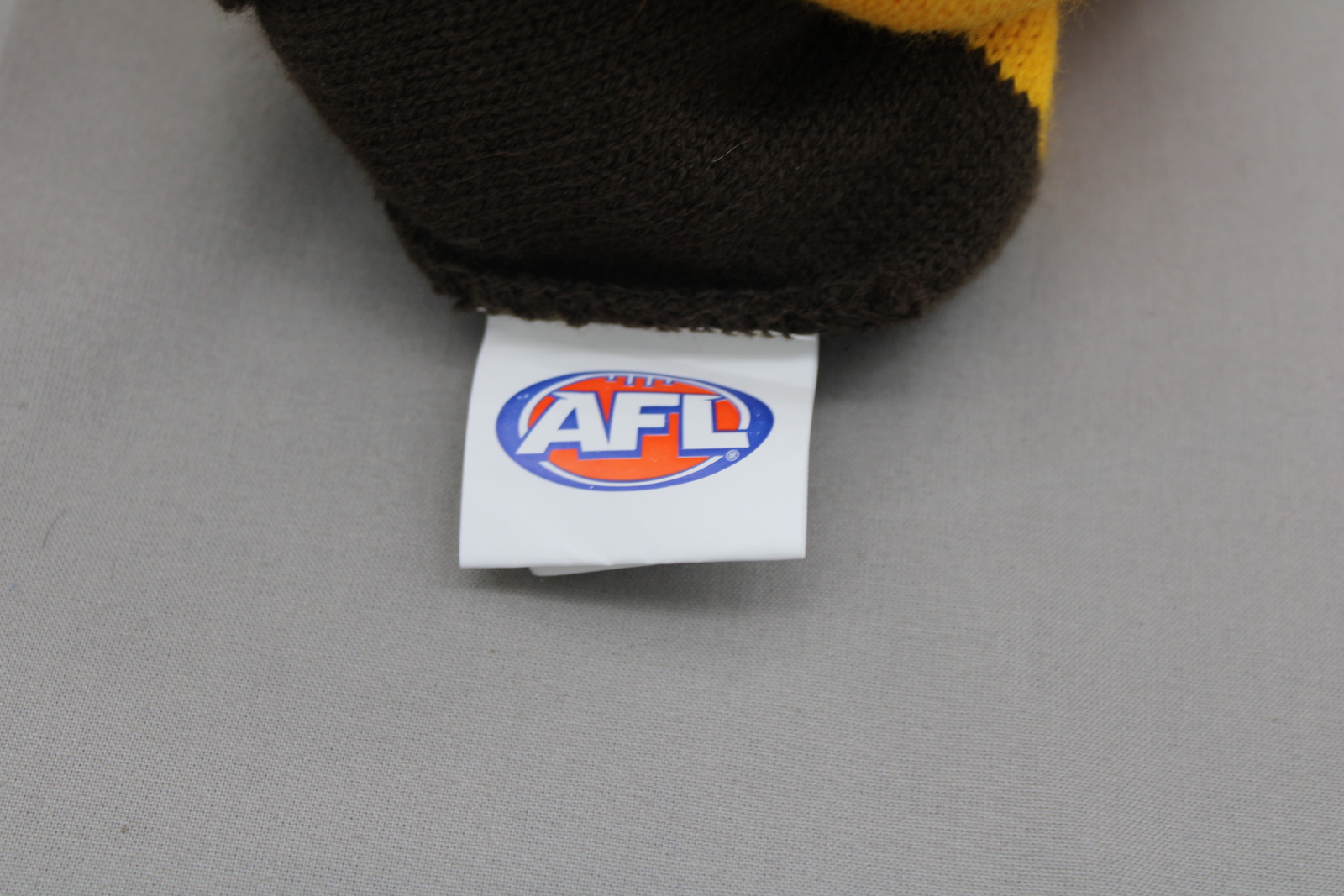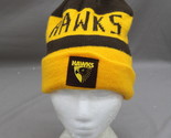 Up for sale is a retro Hawthorn Hawks toque. It has a yellow body with Hawks woven in top in brown on both sides of the toque. The front fo the toque has the Hawks logo crested on. What a great toque do not miss out on it.