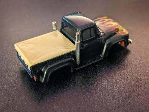 AFX Aurore 1956 Ford Pickup Camion Noir Fauve Flames Capuche Fente Ho Voiture