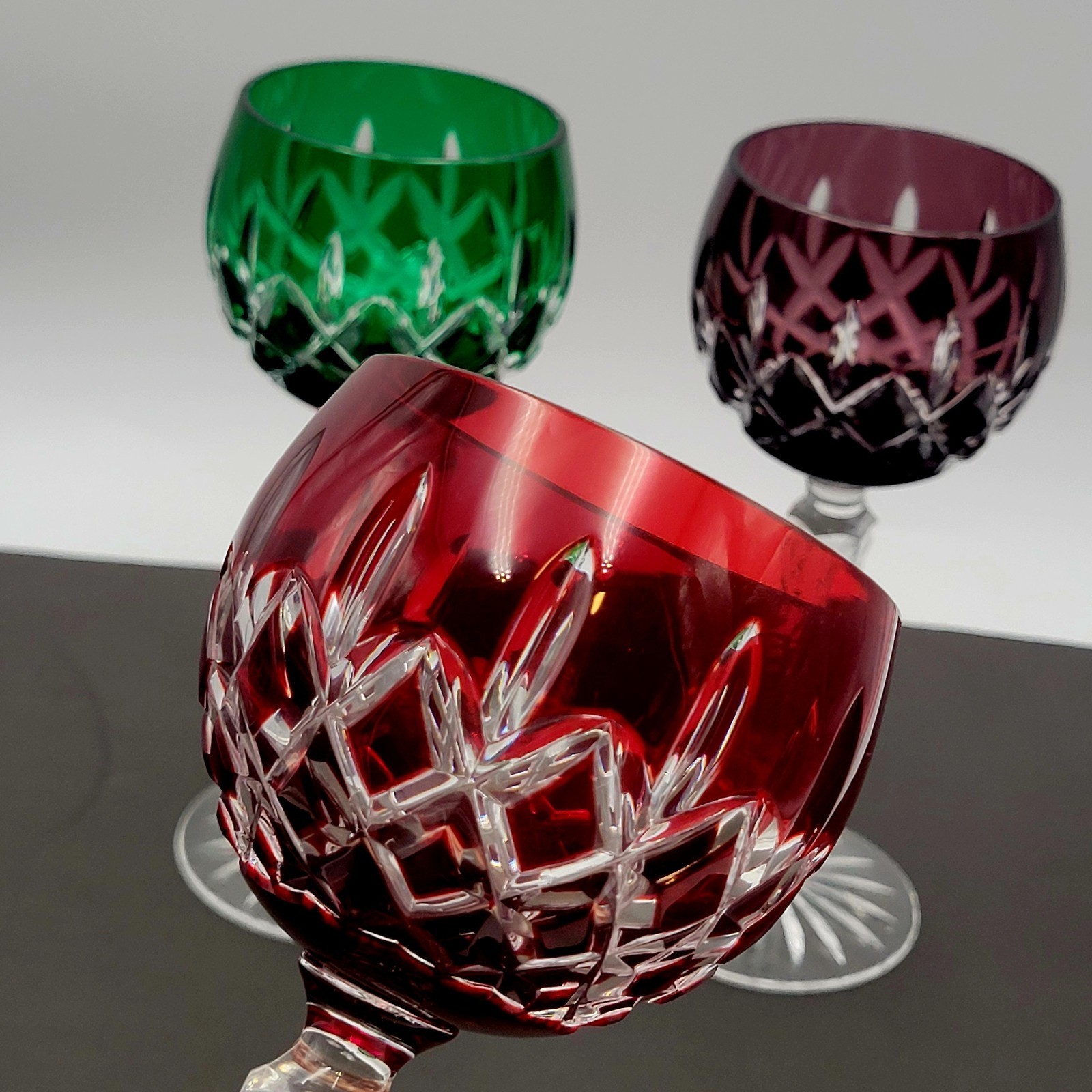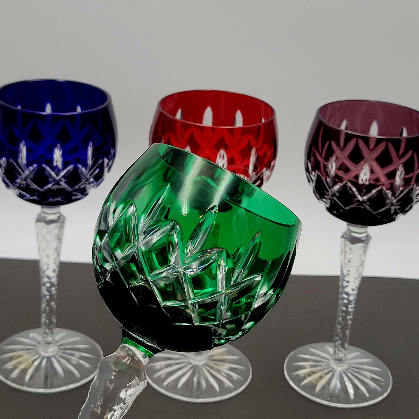 - AJKA Crystal Cut to Clear ARABELLA Stemmed Wine Glasses Set of 4 Vtg