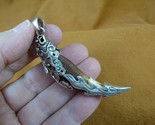 AK-TOOTH-99) 2-1/2" Fossil 1000 yrs old Wolf tooth silver filigree flame pendant