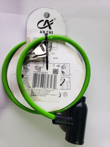 You are Buying a brand New And Factory Sealed AN CHI 21 Inch Bike Locks Cable Lock Coiled Secure Keys Bike Cable Lock Green.