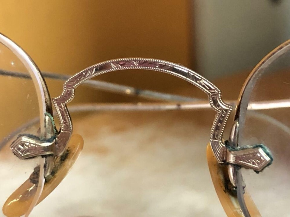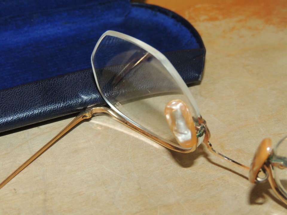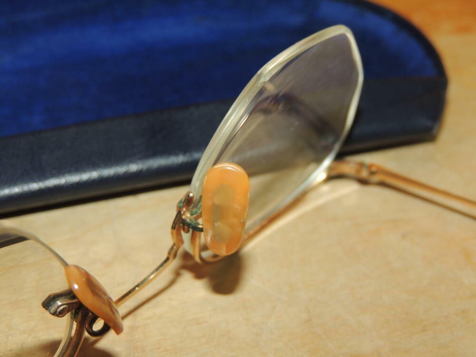 VINTAGE GOLD FILLED EYGLASSES, 1930'S, MARKED "B L" ON THE NOSE PIECE AND "AO" ON THE EAR PIECES THE CASE IS MARKED "AO" ON THE REVERSE AND "DR. J.W. KINARD" "OPTOMETRIST" "1419 AVE. O LUBBOCK, TEXAS". LOOK CLOSELY AT THE PICTURES BEFORE PURCHASING.