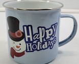 - AP) Happy Holidays Christmas Snowman Enamel Blue Coffee Mug