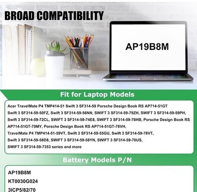 - AP19B8M Battery for Acer TravelMate P4 TMP414-51 Swift 3 SF314-59