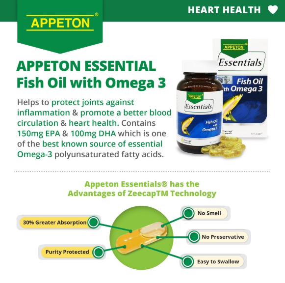 APPETON Essentials Fish Oil with Omega-3 (60 Softgels) – Supports Heart & Joint