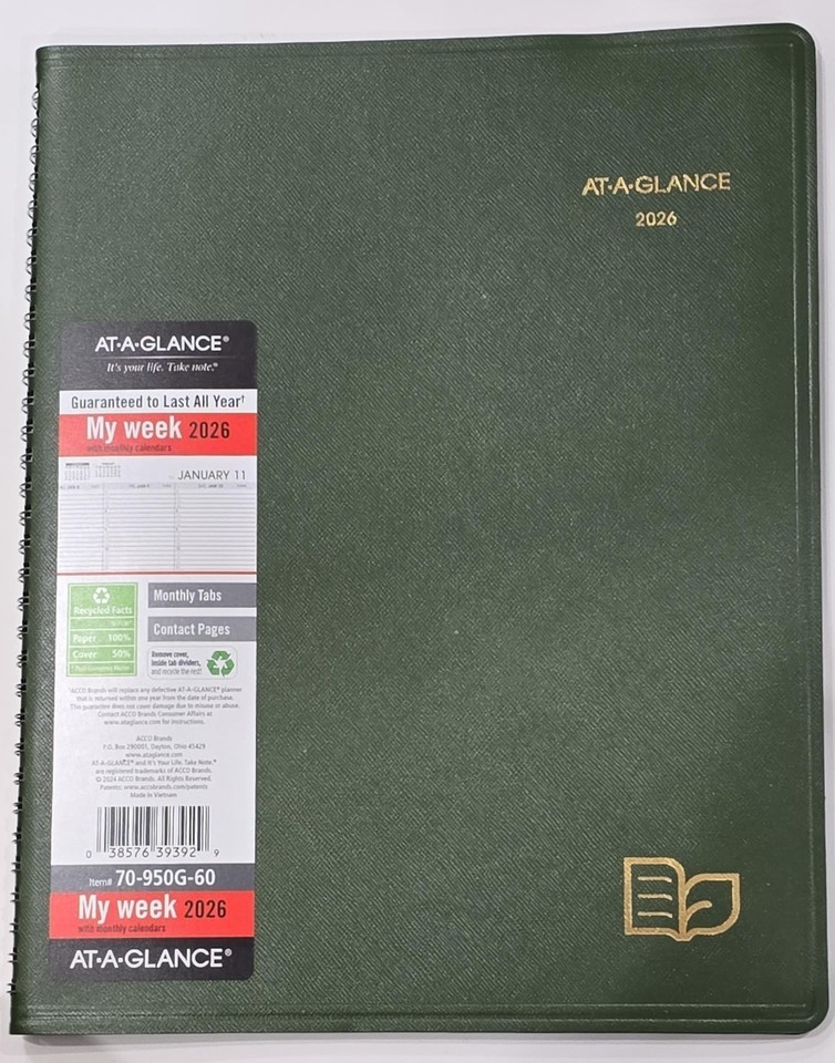 - AT-A-GLANCE (70-950G-60) Recycled 2026 Weekly/Monthly/Appointment Book Planner