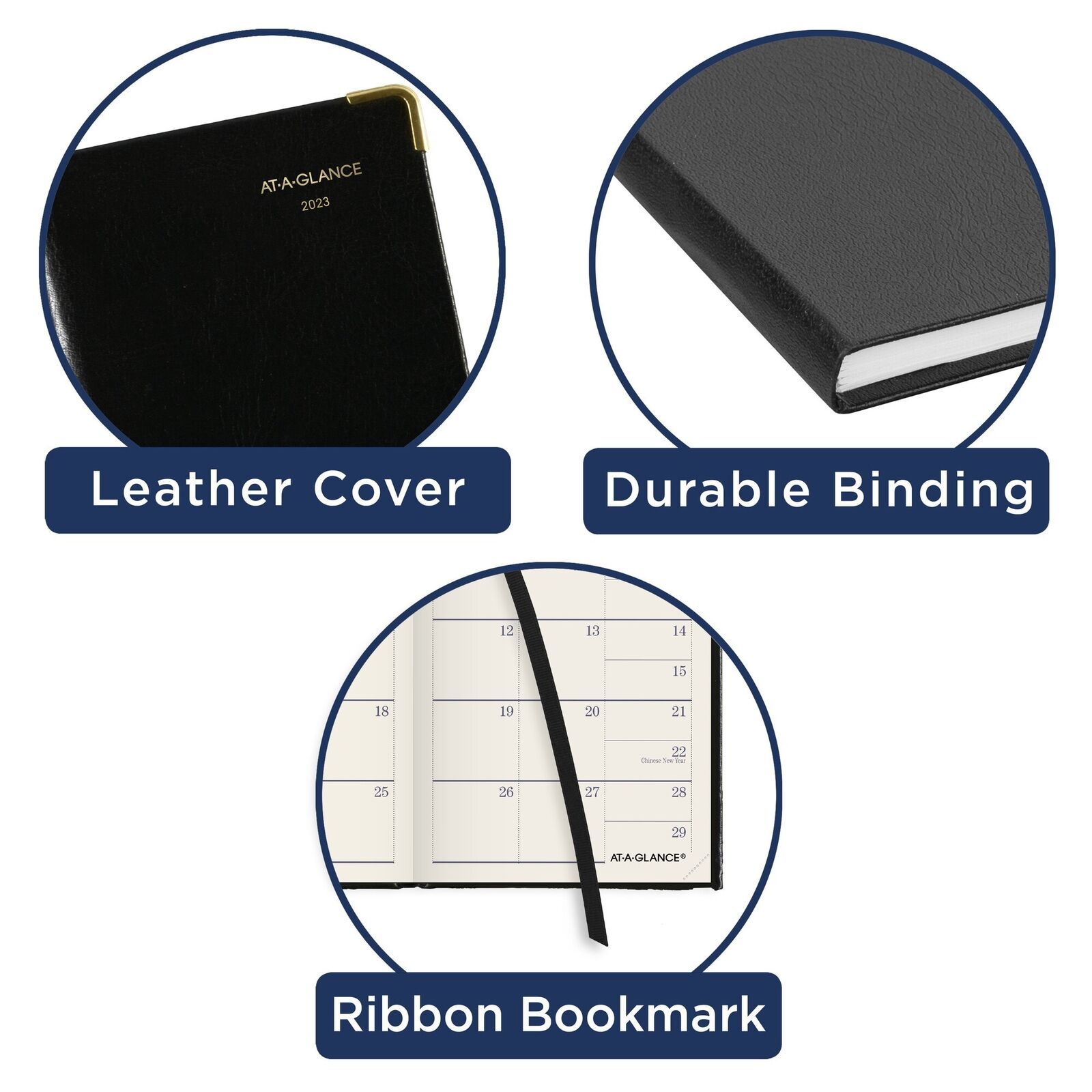 AT-A-GLANCE Fine Diary 2023 Weekly Monthly Diary Black Pocket Weekly 70-1111-05