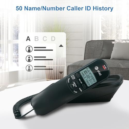 - AT&T TR1909B Trimline Corded Phone with Caller ID, Black