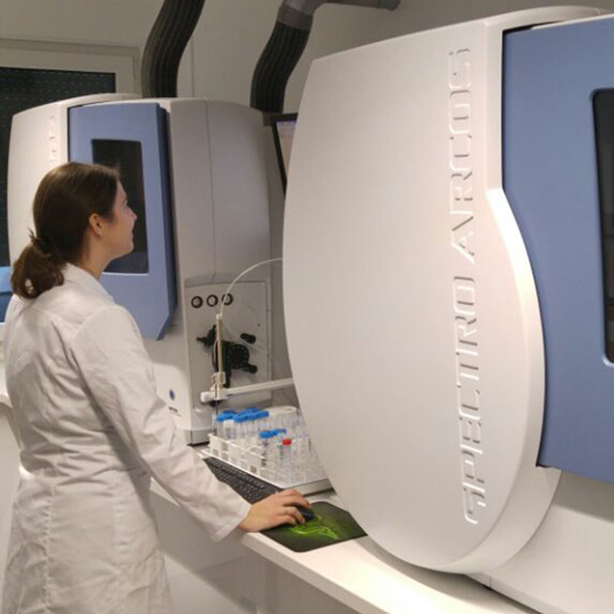 High-end Spectro Arcos ICP-OES machine testing + an Ion chromatography machine for nitrate and fluorine + a titrator for alkalinity. Salinity is also double-checked using a high-precision conductivity meter.