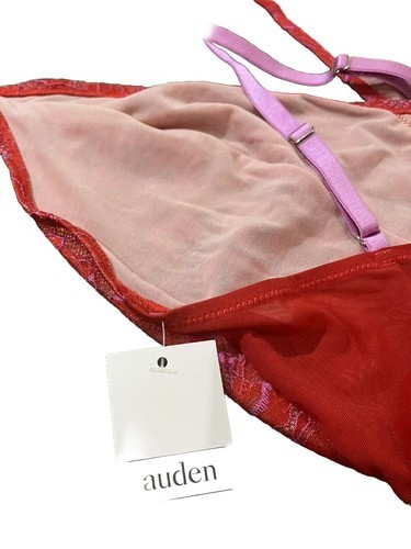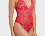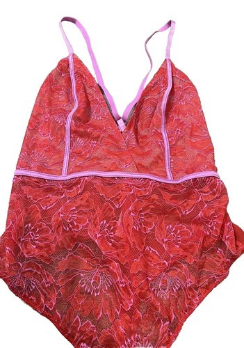 AUDEN ~ Size XS ~ Teddy Lace V-Neck Lingerie Bodysuit Sleepwear ~ Pink/Red