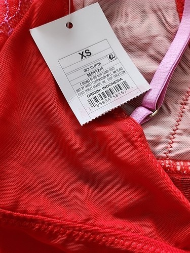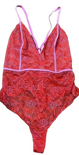 - AUDEN ~ Size XS ~ Teddy Lace V-Neck Lingerie Bodysuit Sleepwear ~ Pink/Red