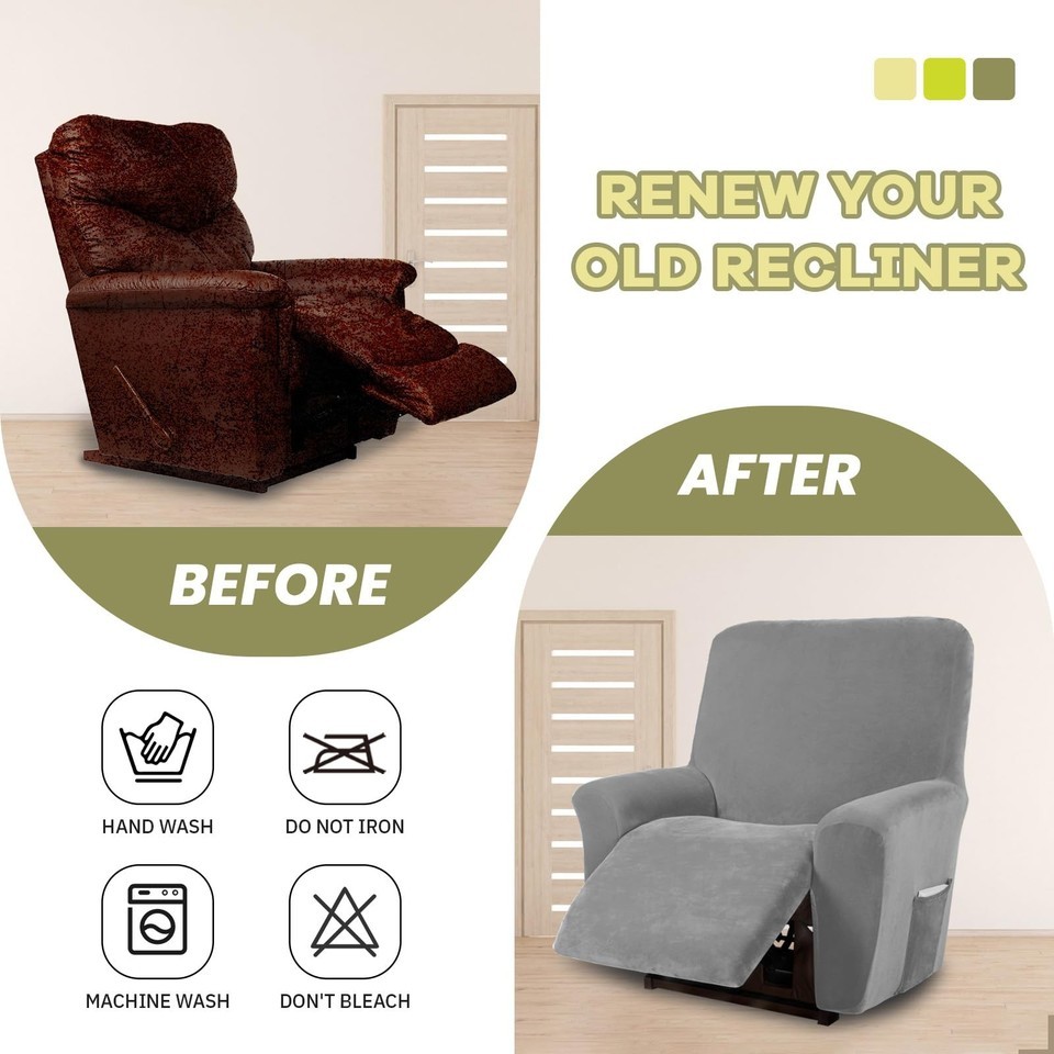 - AZON Velvet Stretch Recliner Chair Cover Elastic Protector Charcoal 1-Pc