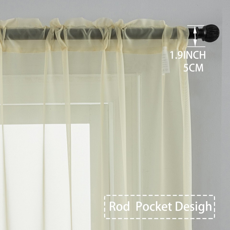 - AZRMT Curtains 2 Panels 37x120 Inches Long Grey Sheer Rod Pocket Drapes