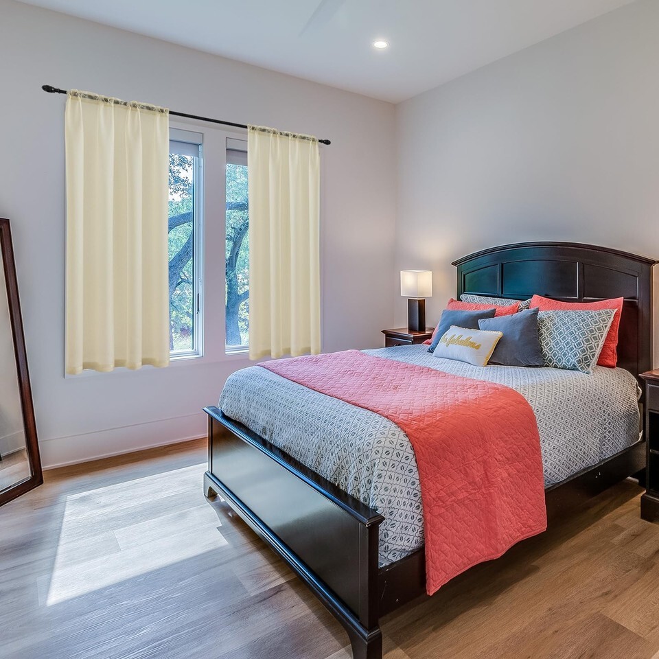 Sheer Curtains: Classic solid color sheer curtains perfect use for America family room,where you want to add some privacy to their windows while still allowing natural light to filter through