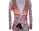 The Abercrombie Fitch SLEEPWEAR Collection Romper is a stylish and comfortable piece of clothing designed for women in size Small. This white romper features a paisley pattern with a V-neckline and long sleeves, making it perfect for the winter, fall, and spring seasons. The lightweight fabric of polyester and viscose ensures a cozy and breathable feel, while the lace fabric type adds a touch of elegance. The tie closure and bow accents add a charming detail to this vintage-inspired babydoll style bodysuit.