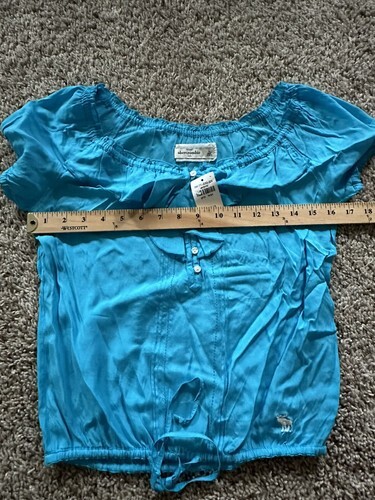 - Abercrombie Kids Girls Ruffles Blue Tie Wasit Top Short Sleeve Size Large Button