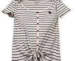 - Abercrombie Kids Pink & Black Striped Button-Down Knot-Front Top Size 9/10