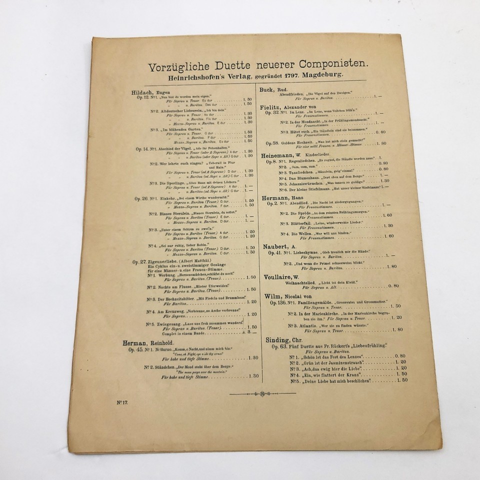 - Abschid der Vogel Eugen Hildach op.14, No.1, 1892 Duet Passage-Birds farewell!