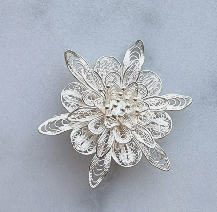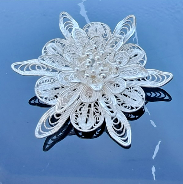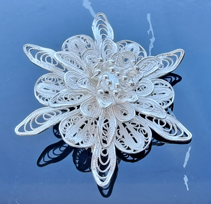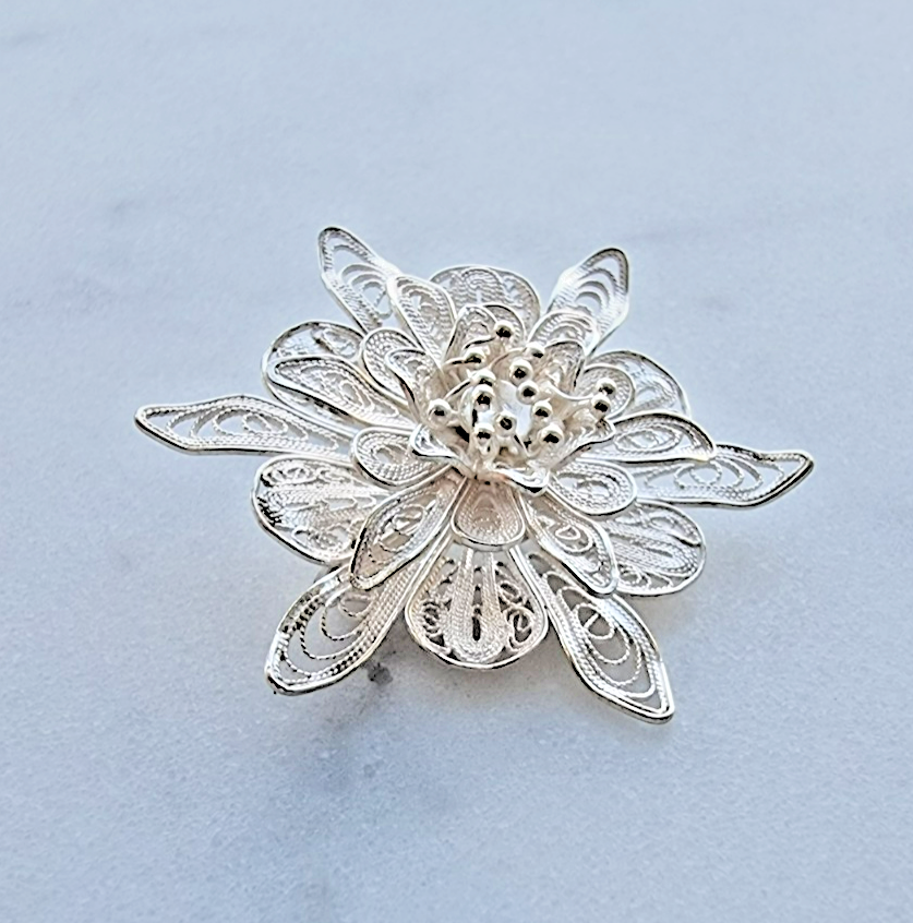 - ABSOLUTELY STUNNING 925 STERLING SILVER ORNATE FILIGREE FLOWER BROOCH