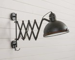 Here is a new unique design wall sconce light, this is a hardwire light and needs wired, this is an accordian design sconce and is very neat, made of metal and has a black distressed finish with rust spots and has a round shaped shade that faces downward and is wired with 1 socket that Requires 1 Led Refrigerator 40 watt max bulb ( bulb not included) this is accordian design and can pull in or out, it has a hook on the bottom of it so can hang items as my second picture shows, other items not included. this wall sconce light extends 33 inches out and is 17 inch high , the light dome measures 10 inch in diameter,nice industrial design wall sconce light. And is distressed finish as i show in my closeup pictures and are made this way.