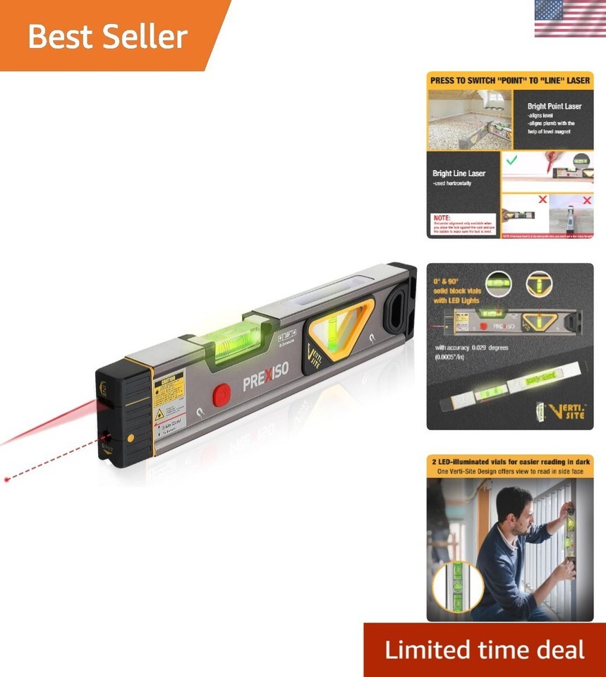 Say goodbye to frustrating misalignments and the guesswork of traditional leveling. Our Accurate 12" Laser Level Spirit Level combines cutting-edge laser technology with practical design to provide a level of precision that elevates your project to new heights. With robust features like magnetic support, LED lights, and an anti-shock frame, you can work confidently in any environment, no matter how challenging.