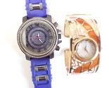The Accutime Unbranded Bracelet Quartz Unisex Wristwatches are stylish and casual timepieces suitable for both men and women. With a round watch shape and analog display, these watches feature a central second and 12-hour dial. The quartz movement ensures accurate timekeeping, making them a practical and reliable accessory. The bracelet band adds a touch of elegance to the overall design, making these watches a versatile choice for everyday wear. The big dial is about 52 mm and has blue flexible straps and the other one is unbraded, quartz with an attractive bracelet with hinges. Both have new batteries installed in them.