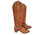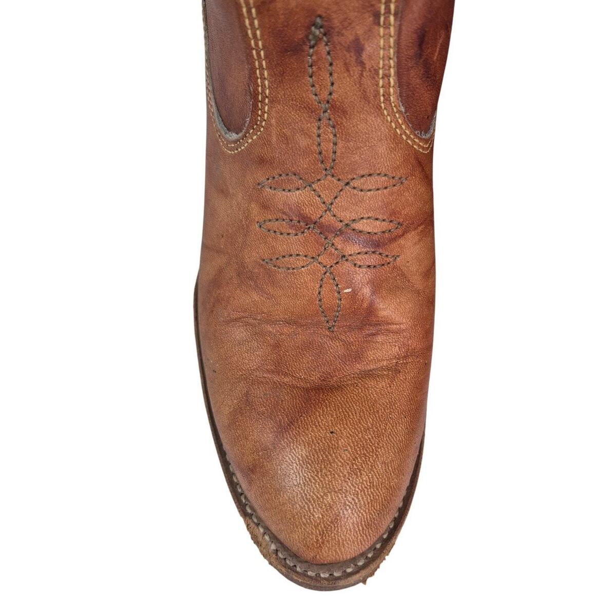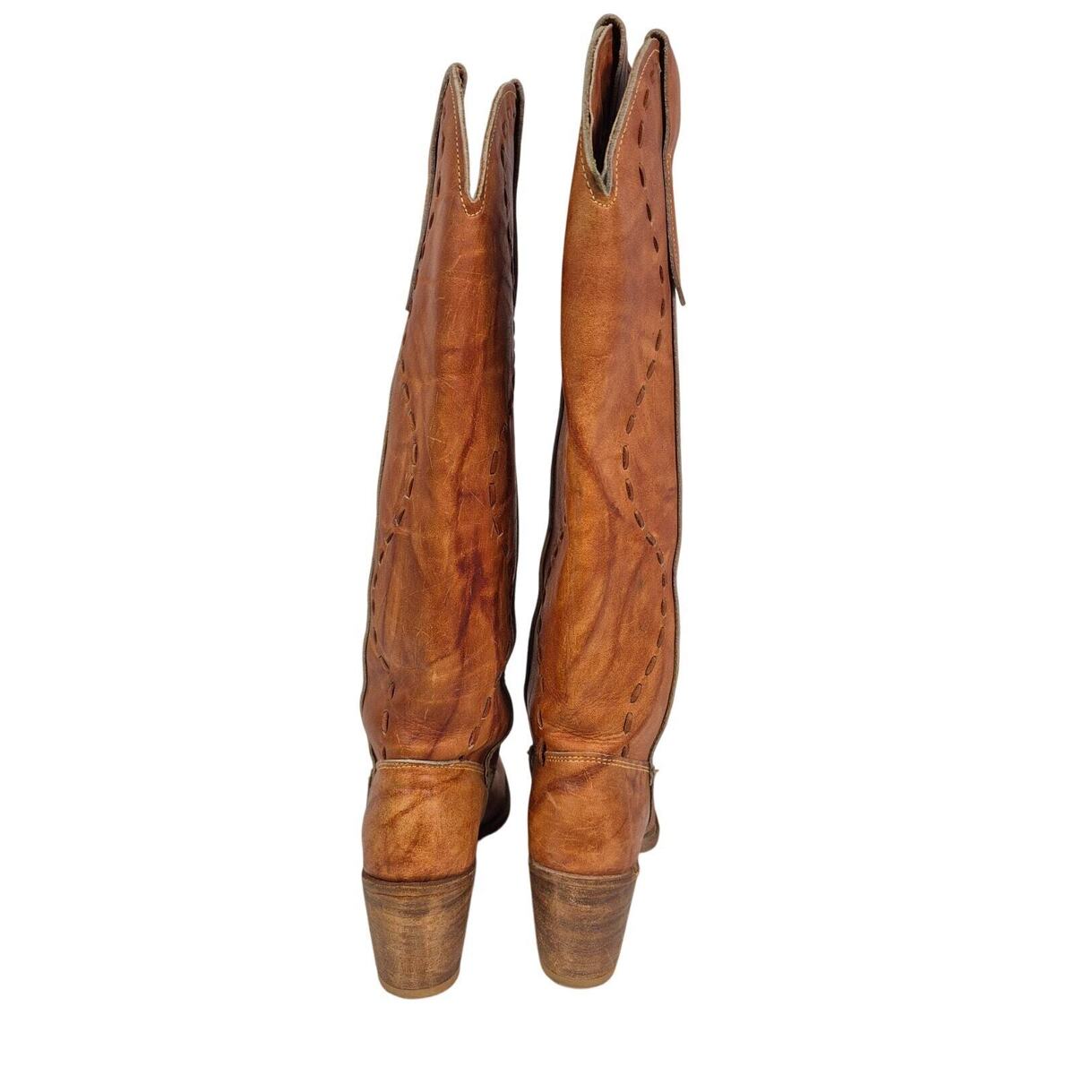- Acme Vintage Brown/Tan Leather Cowgirl Boots Sz 4 1/2 Knee High Top Stitching