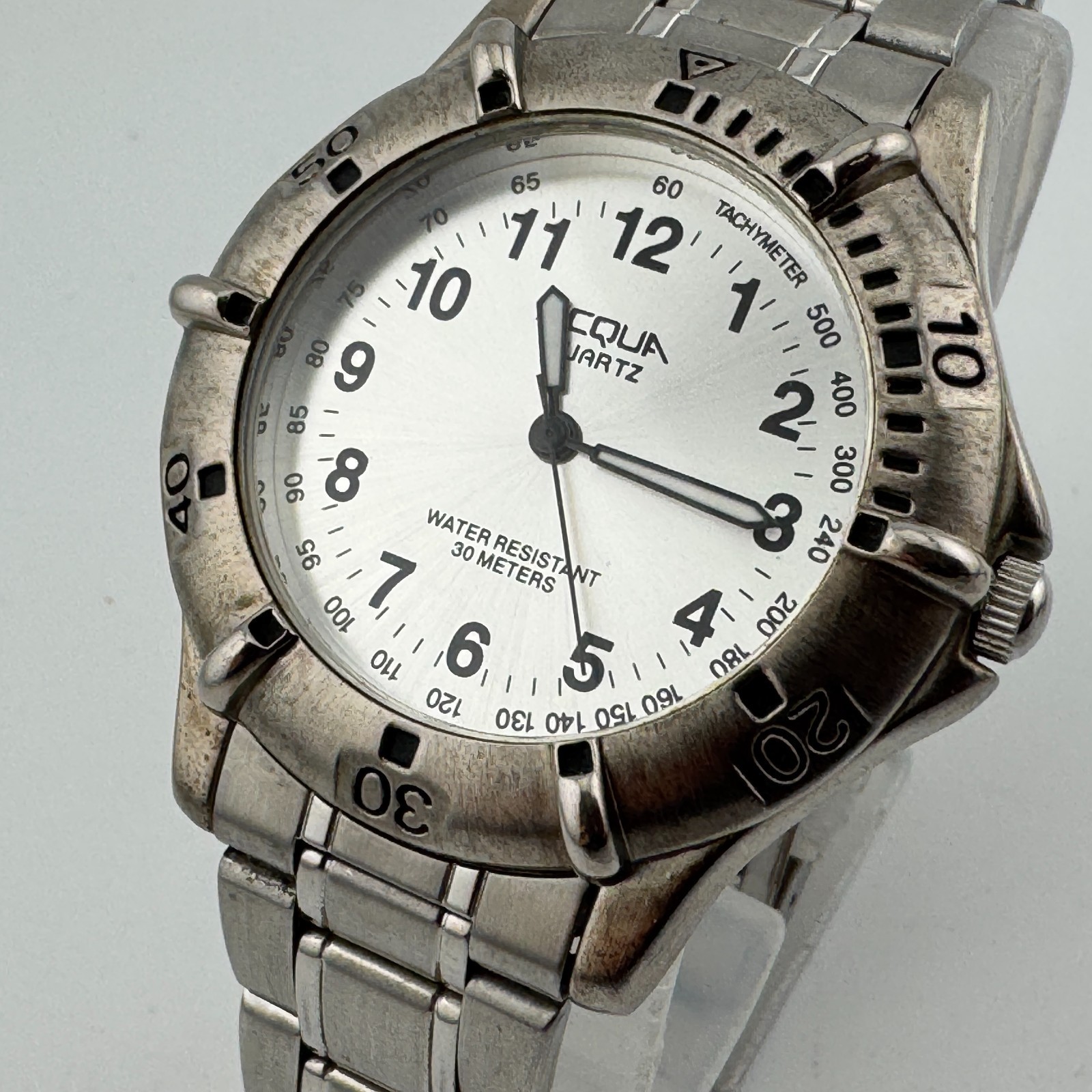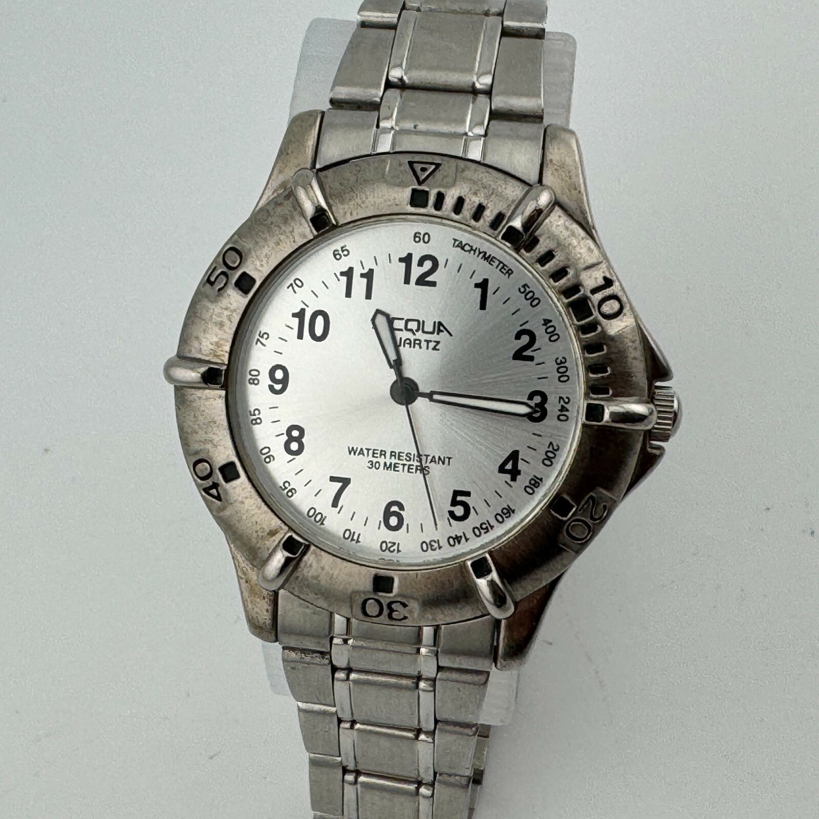 - Acqua by Timex Quartz Watch Men 30m Silver Fixed Bezel Analog New Battery 7.5"