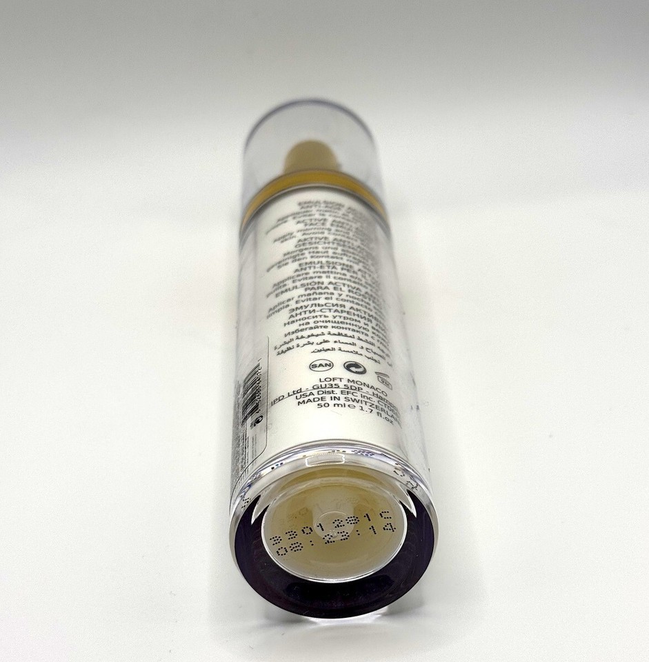 This lightweight anti-aging face emulsion hydrates, firms, and protects the skin using a blend of high and low molecular weight hyaluronic acid. Enriched with nutrients and Meadowfoam seed oil, it supports skin renewal, improves elasticity, and helps reduce signs of aging. The formula includes mattifying powder for a soft, refreshed finish, leaving skin smoother, firmer, and more radiant with regular use.