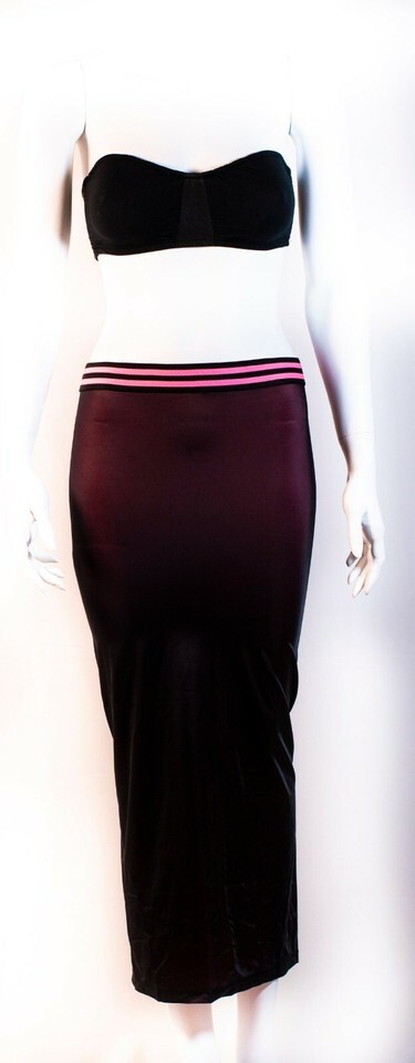 This is a great Adam Selman Sport skirt. Unproduced one of a kind sample item! Skirt has a black outer layer and pink inner layer which shows through slightly when worn to create a unique colored look. Pink striped elastic waistband and ASS logo. Brand new without tags because it is a sample piece.